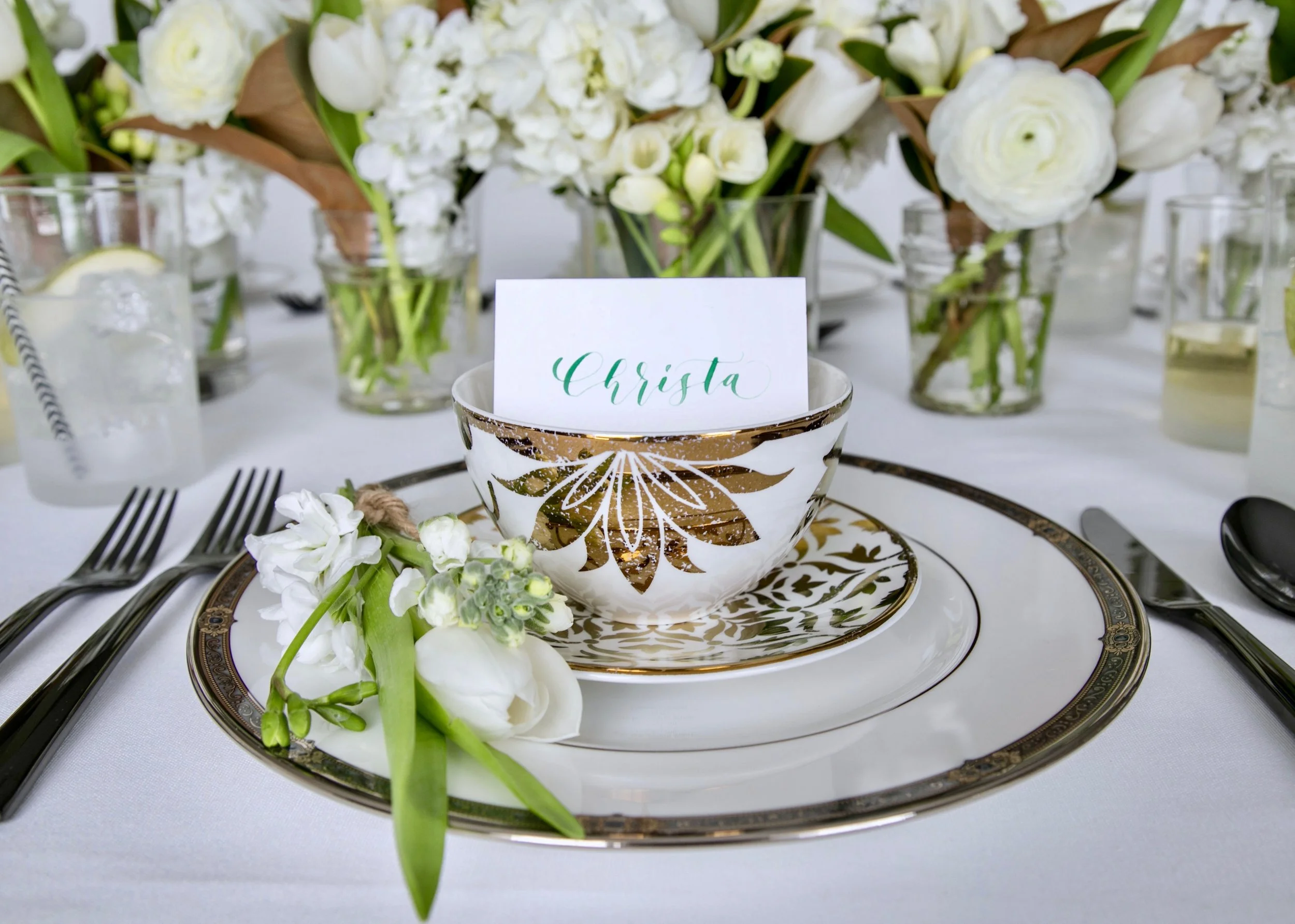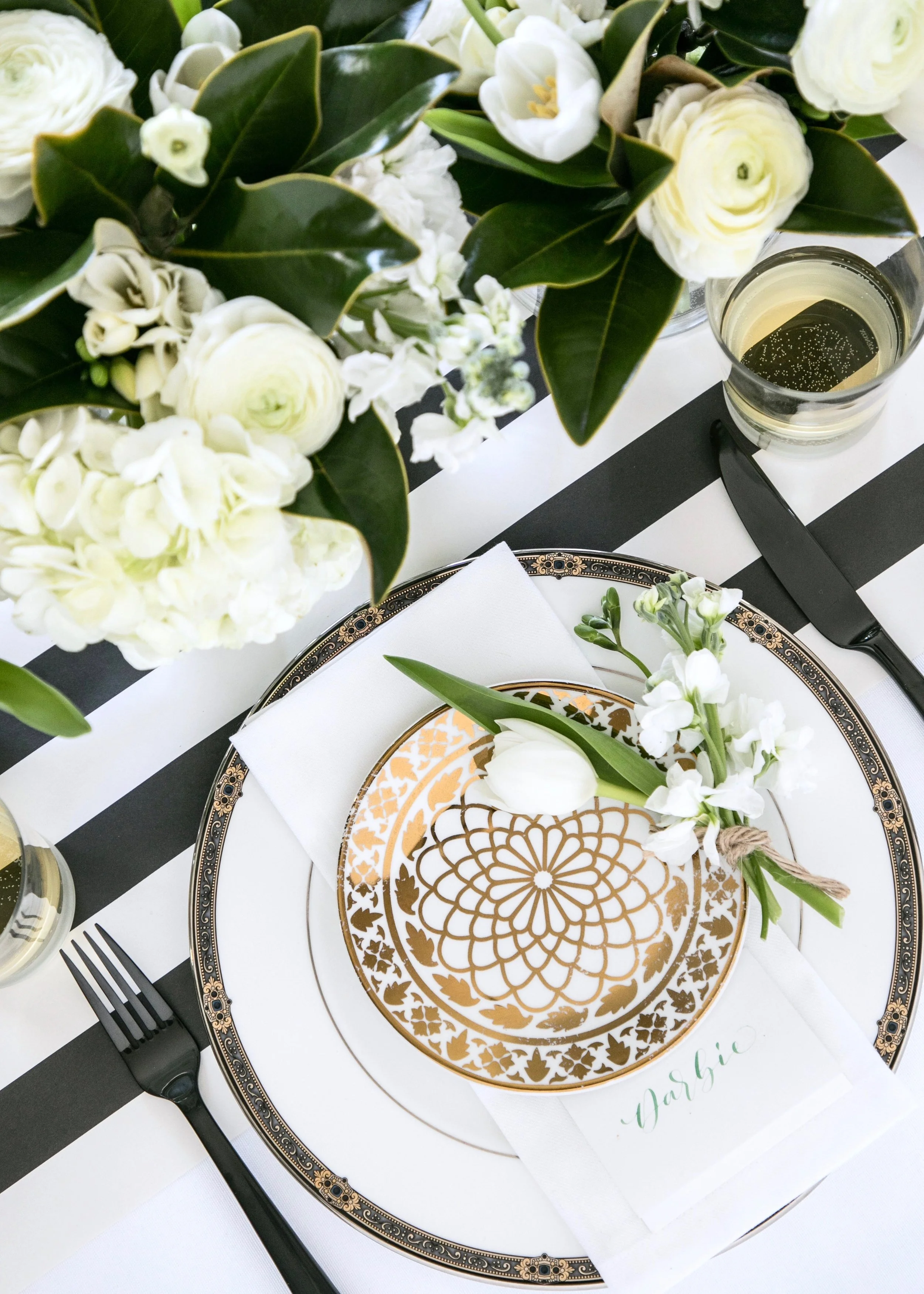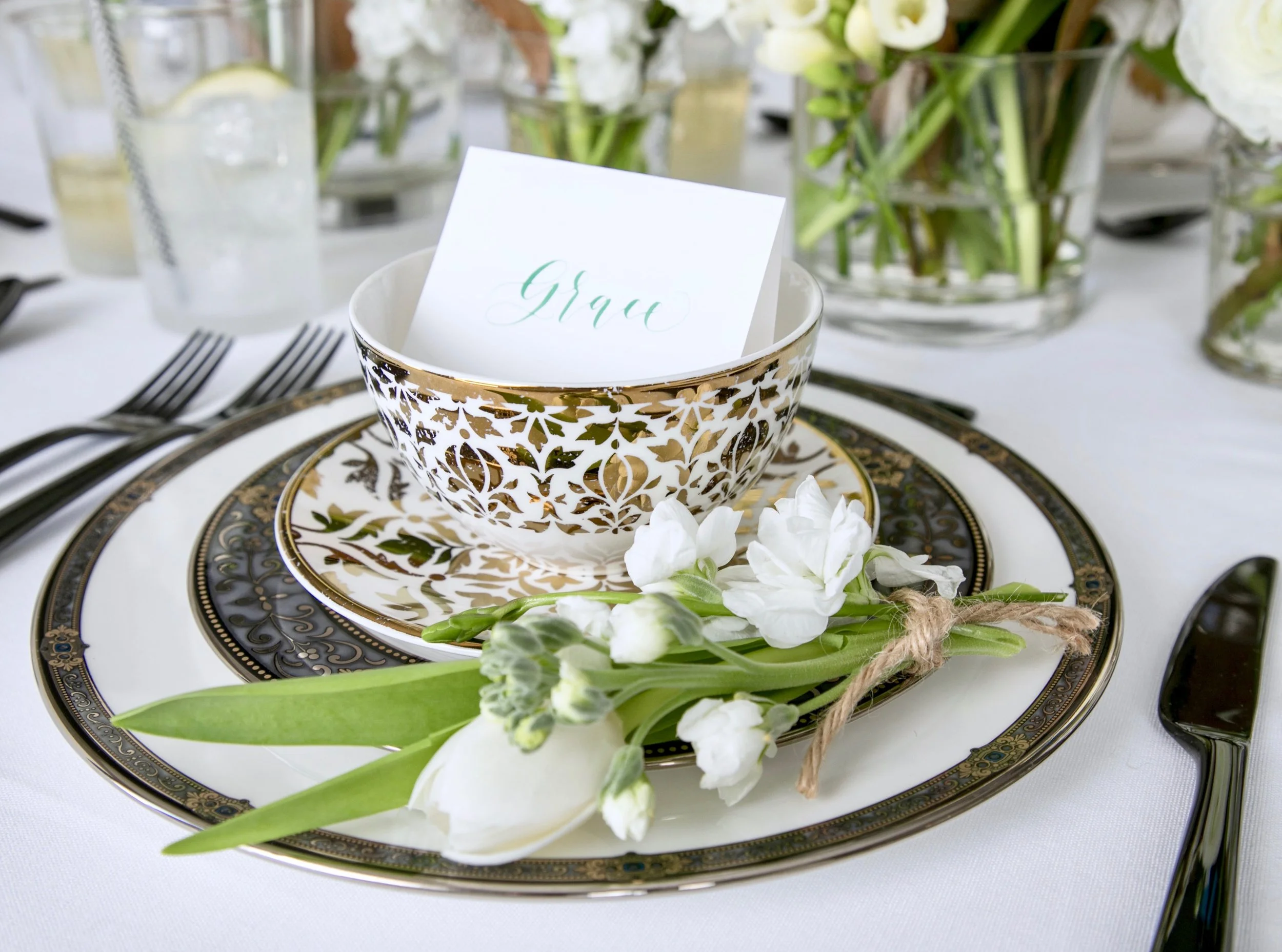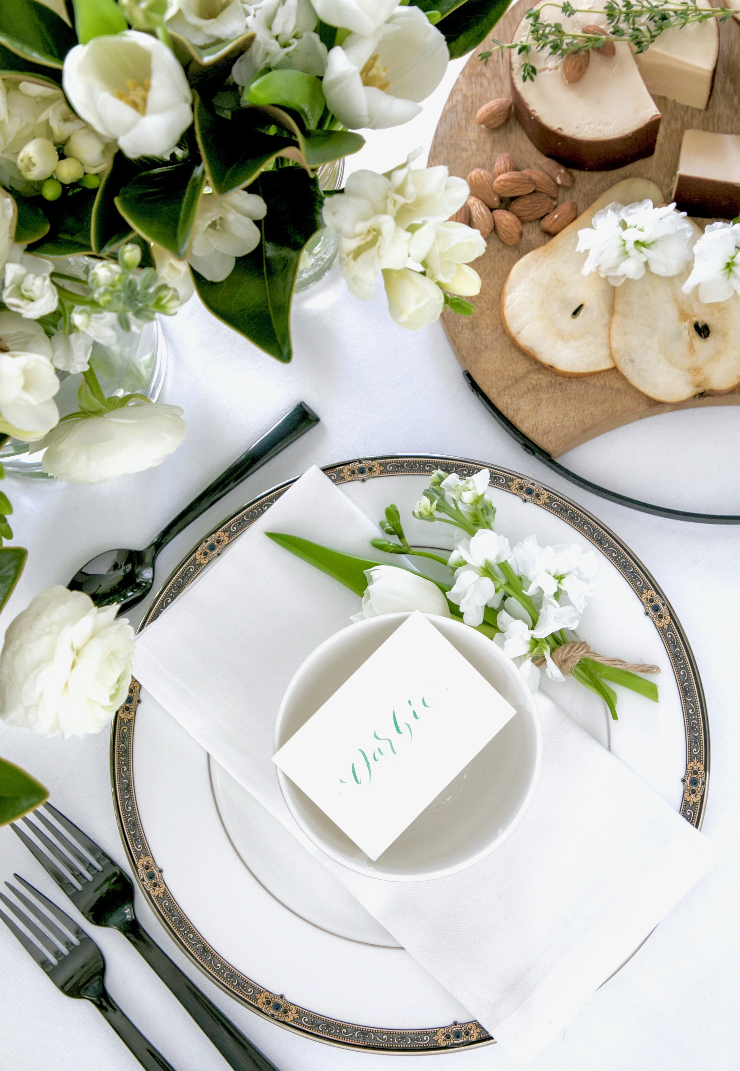 featuring vintage jewel dinnerware & Accessories, Colebrook Onyx flatware, kate spade new york nolita glassware, reed & barton beaded cake stand