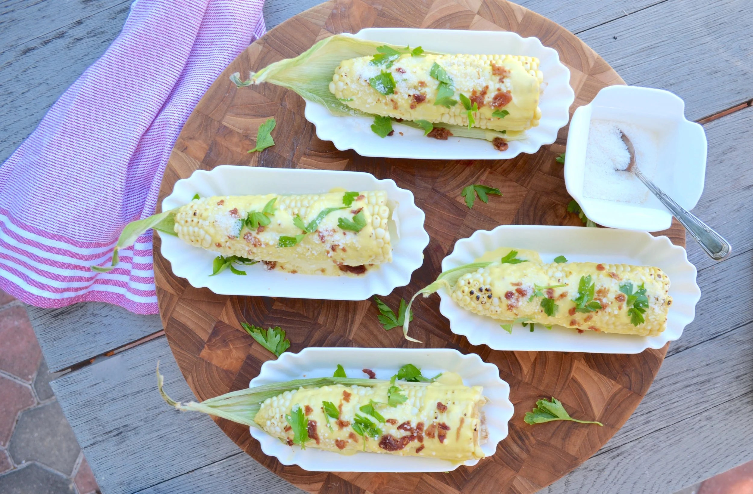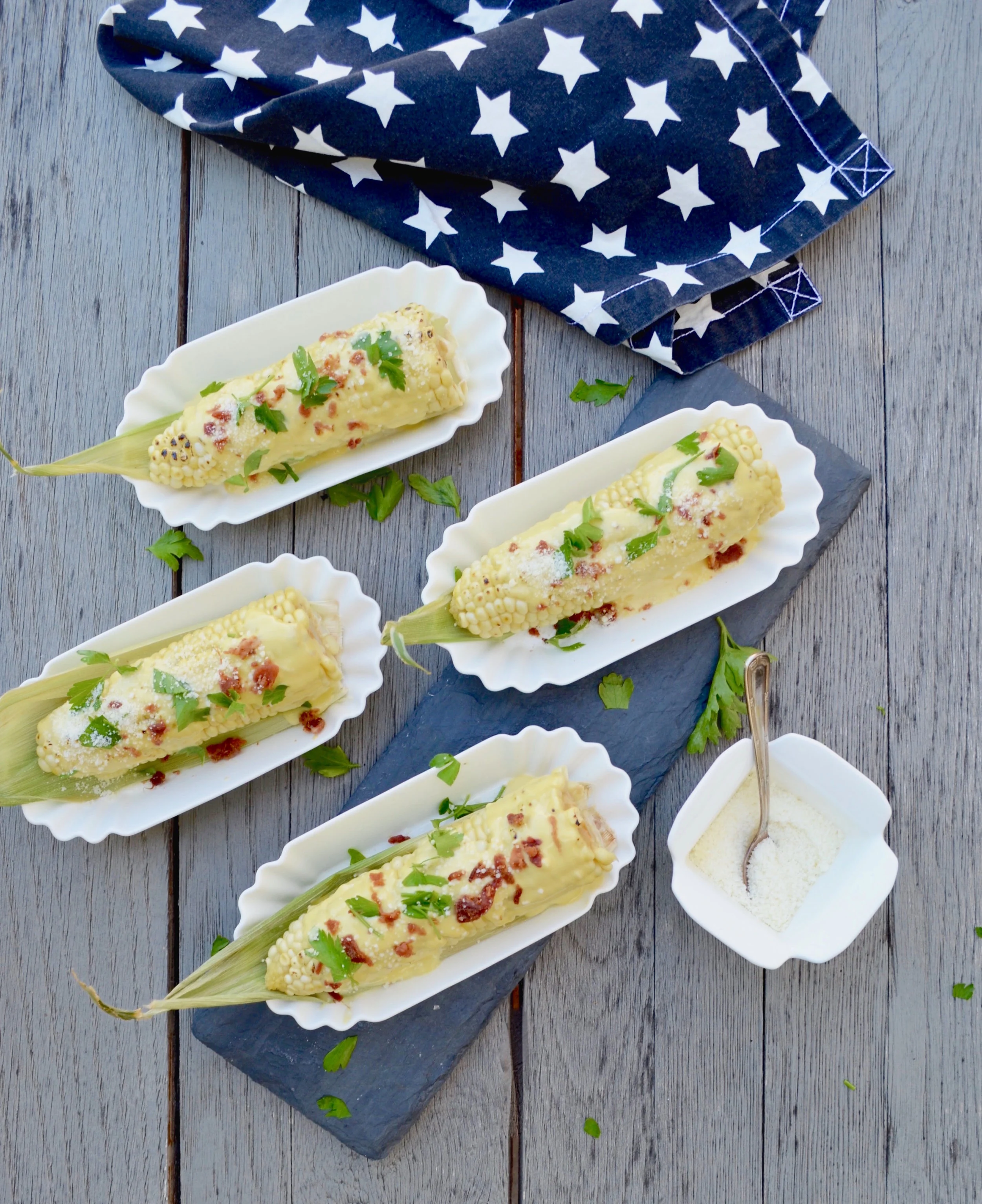 This year, I'm making one of my new favorite summer sides, Italian Corn on the Cob - which is basically a relative of Mexican street corn, I'm sure. Sound good? The recipe is below. I'm serving the corn in hot dog plates, a super easy broccoli salad in small take out containers, and a green summer salad, to name a few.