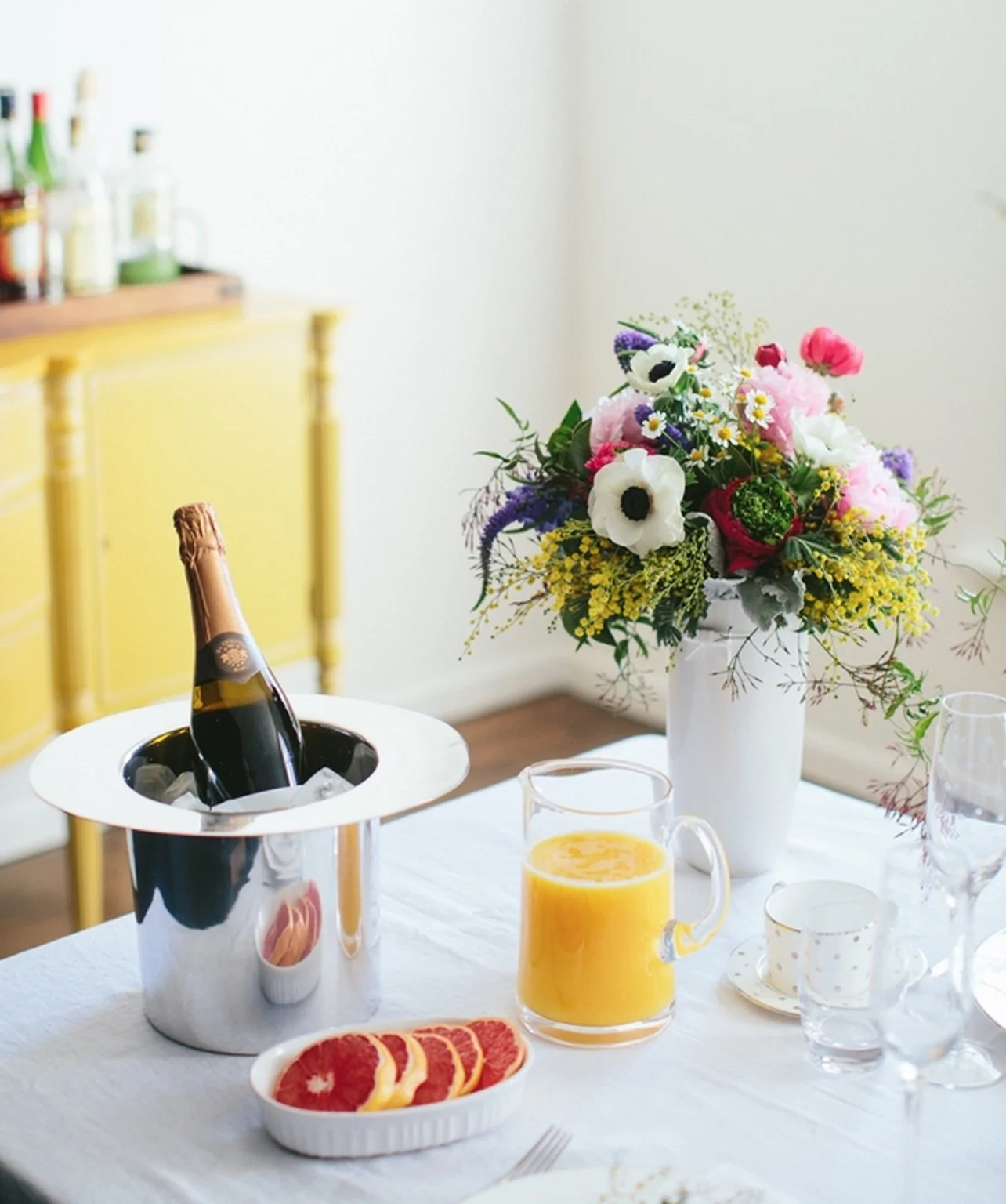Not engaged or married but secretly love nice dishware and want to brush up on your entertaining skills? That's awesome. Us too. You can easily find full fine china sets at resale shops, garage sales, estate sales, even Salvation Army for ridiculously low prices. Have the girls over and host a little soiree for your fine selves. Make it a potluck and have everyone contribute; mimosas for everyone! Cheers!