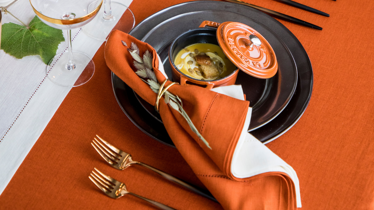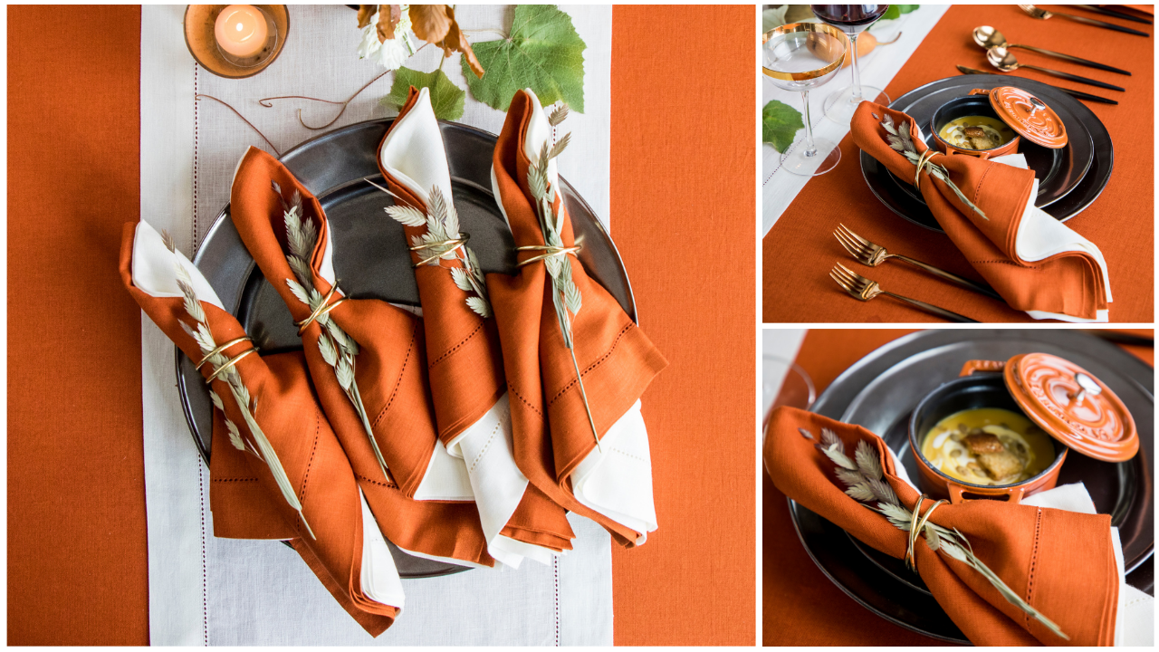 While collaborating with Solino Home, I kept returning to that warmth. Their Classic Hemstitch linen carries color differently. It doesn’t sit on the surface, it sinks in. That’s what gives it depth. This is the kind of foundation I look for when building fall tablescapes or elevated dinner party settings that lean more intimate than styled, similar to what I’ve explored in how to set a fall harvest Thanksgiving table.