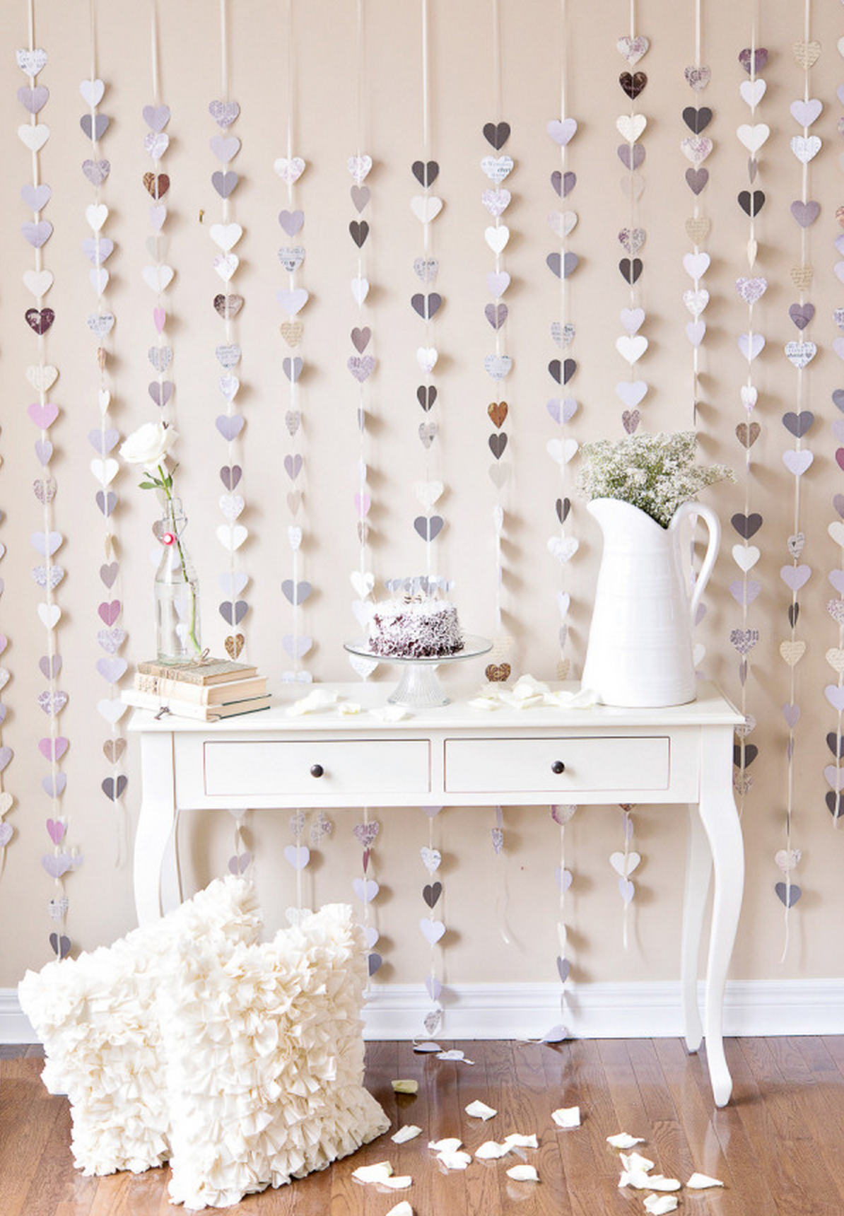 Swooning over this DIY heart backdrop. It's so easy! Major props to you, Wendy Alana for this adorable idea via Style Me Pretty.