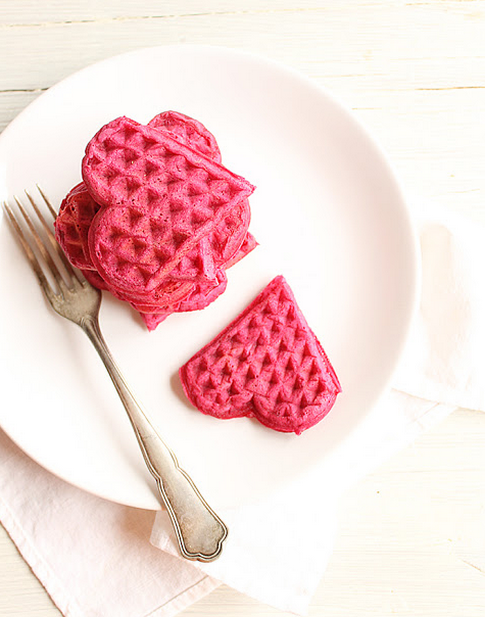 Waffles in the shape of hearts. So cute and cheesy in the best possible way via Almond Corner.