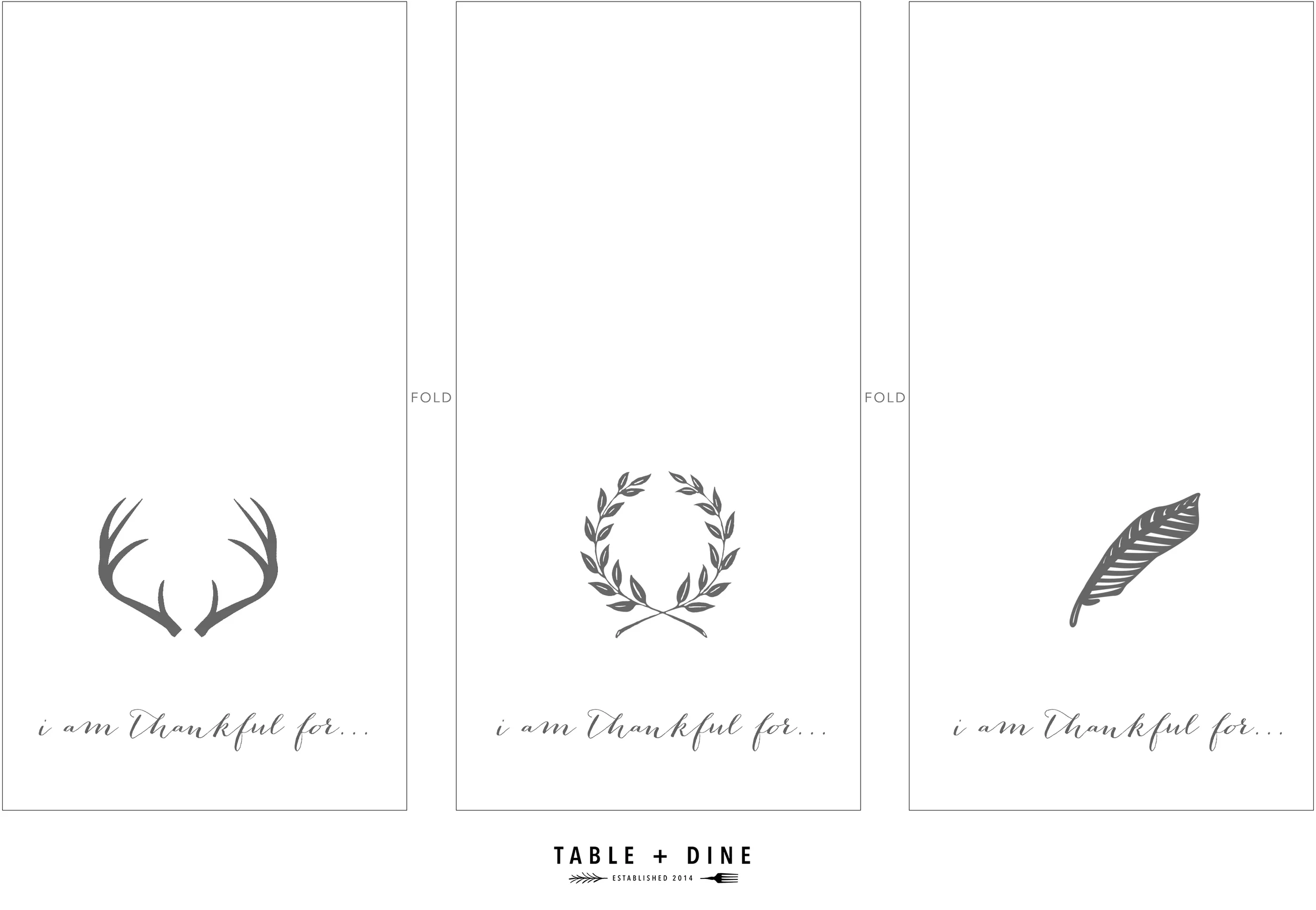 We like to print them on nice, heavy cardstock so that when cut and folded will stand on their own. They can also double as place cards or you could even cut them into a tag shape, hole punch the top with ribbon or twine and tie them around your napkins as napkin rings. If Pinterest has taught us anything, it's that the possibilities are endless.