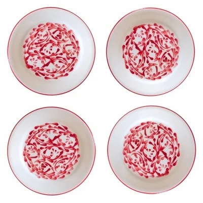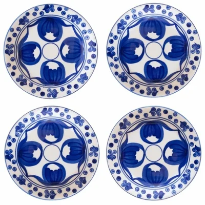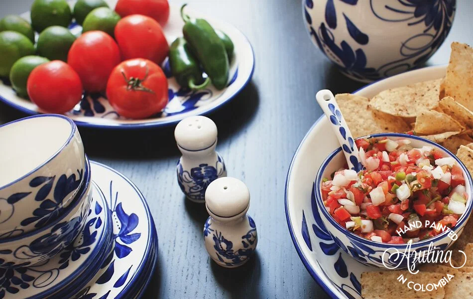 Azulina's hand-painted dinnerware and servingware is made in Colombia, where women artisans paint colorful designs onto each piece by hand, a tradition that began over 100 years ago.