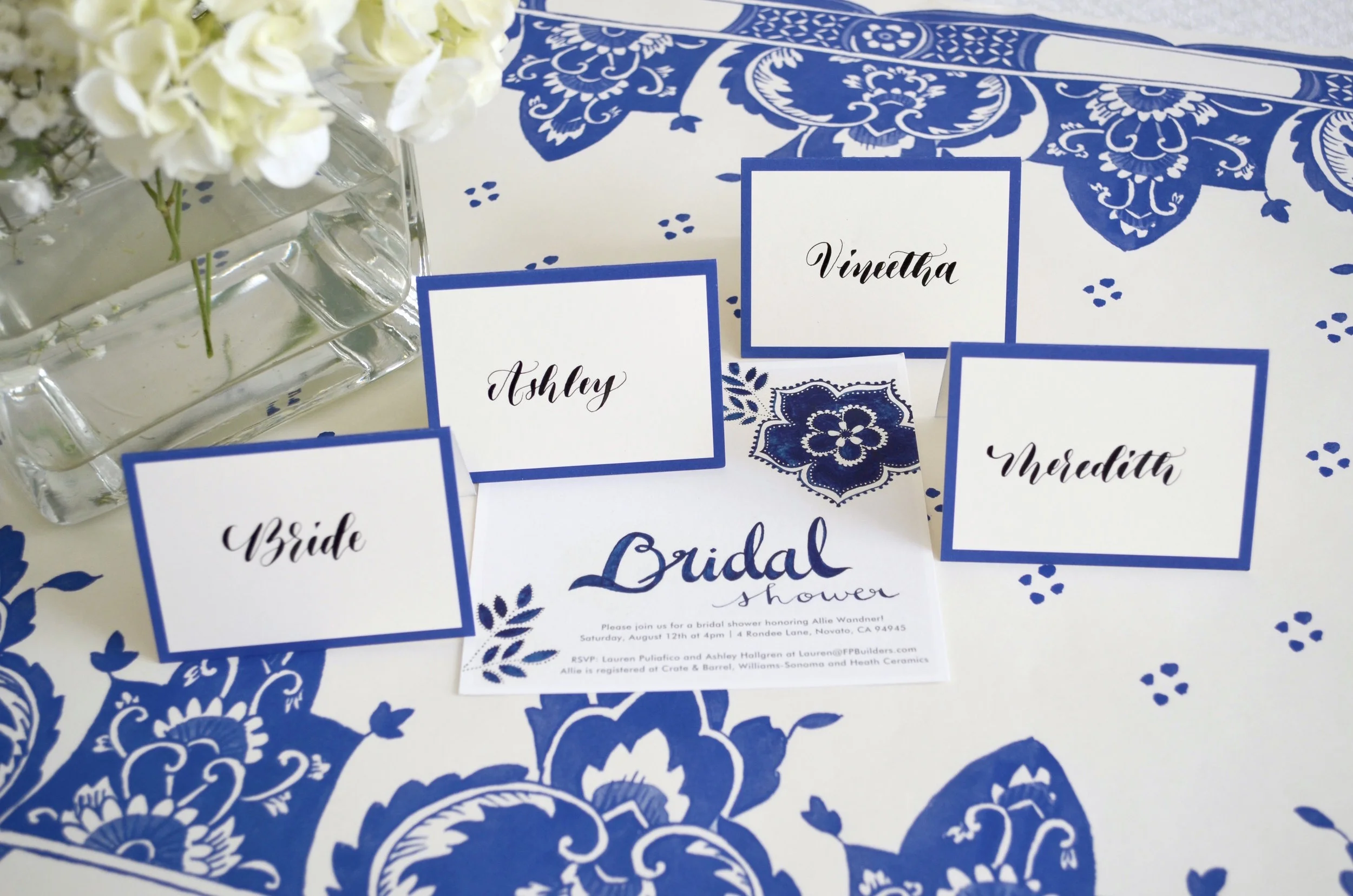 Assigned seating and placecards can be tricky for a Bridal Shower host. They typically don’t know too many of the brides’ friends and family and they don’t want to burden the already busy bride planning their wedding. I loved Lauren’s idea of setting placecards at the door for guests to take to their seats. It’s a lovely and tasteful way to get to know someone you’ve never met, or might not remember.