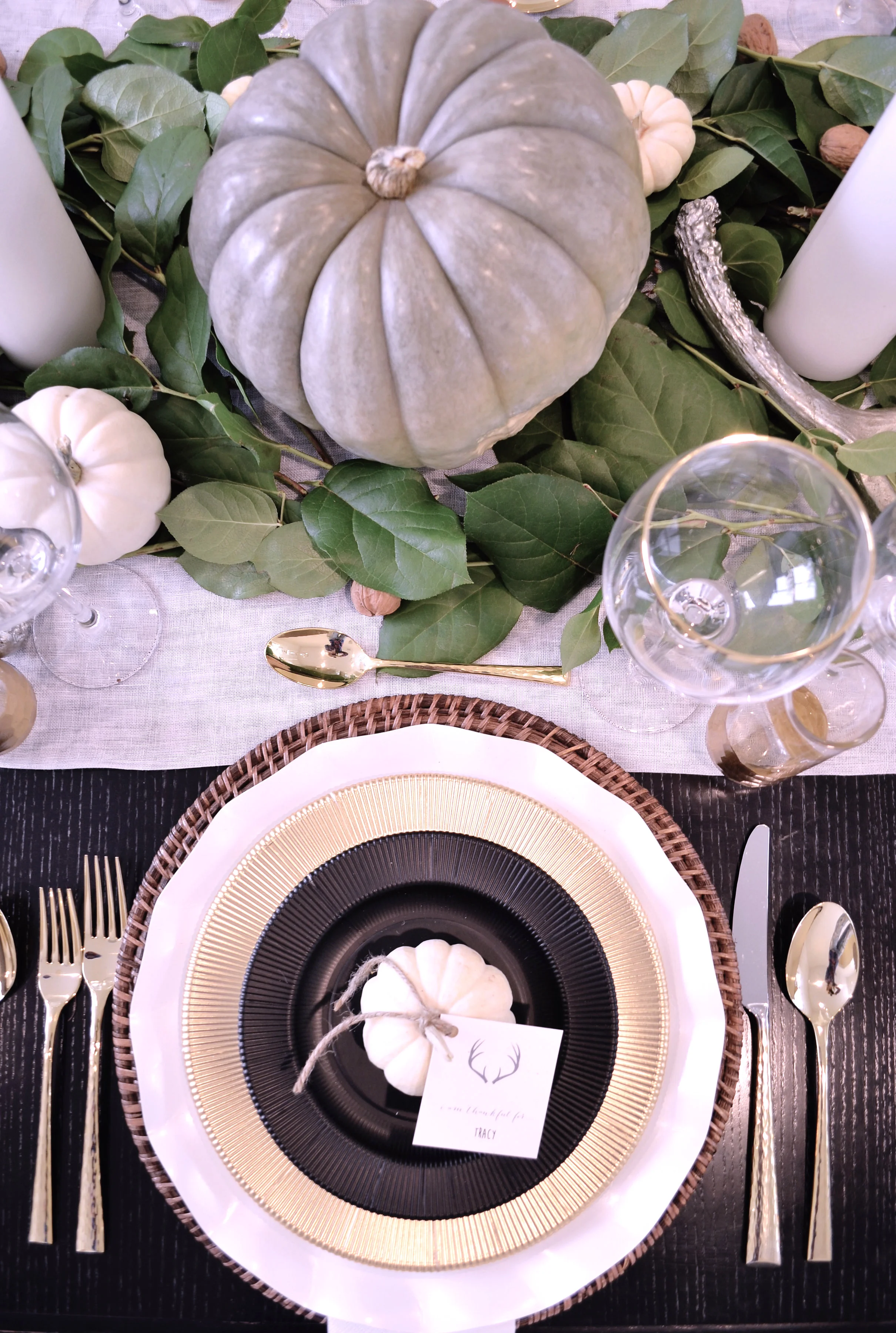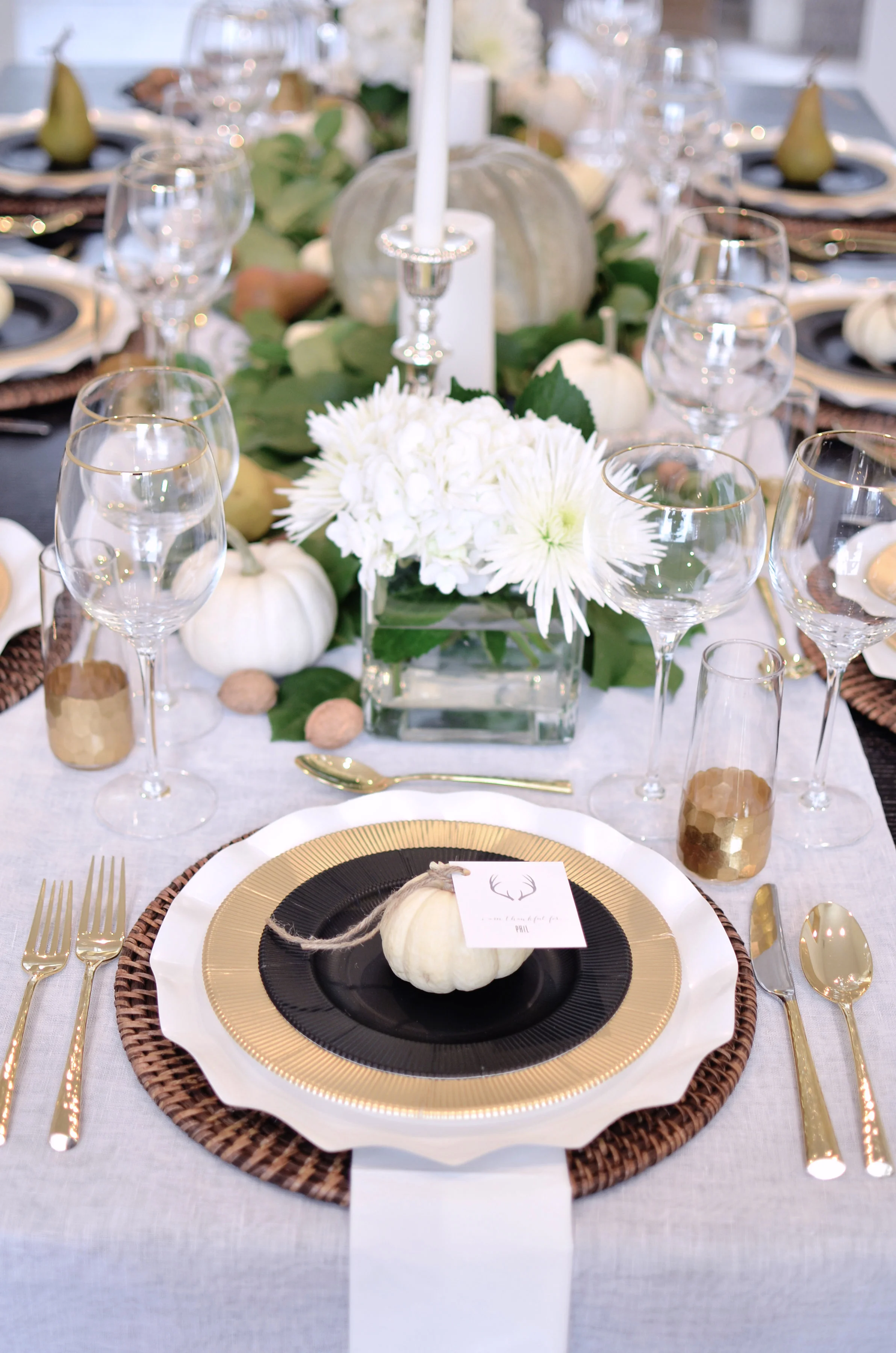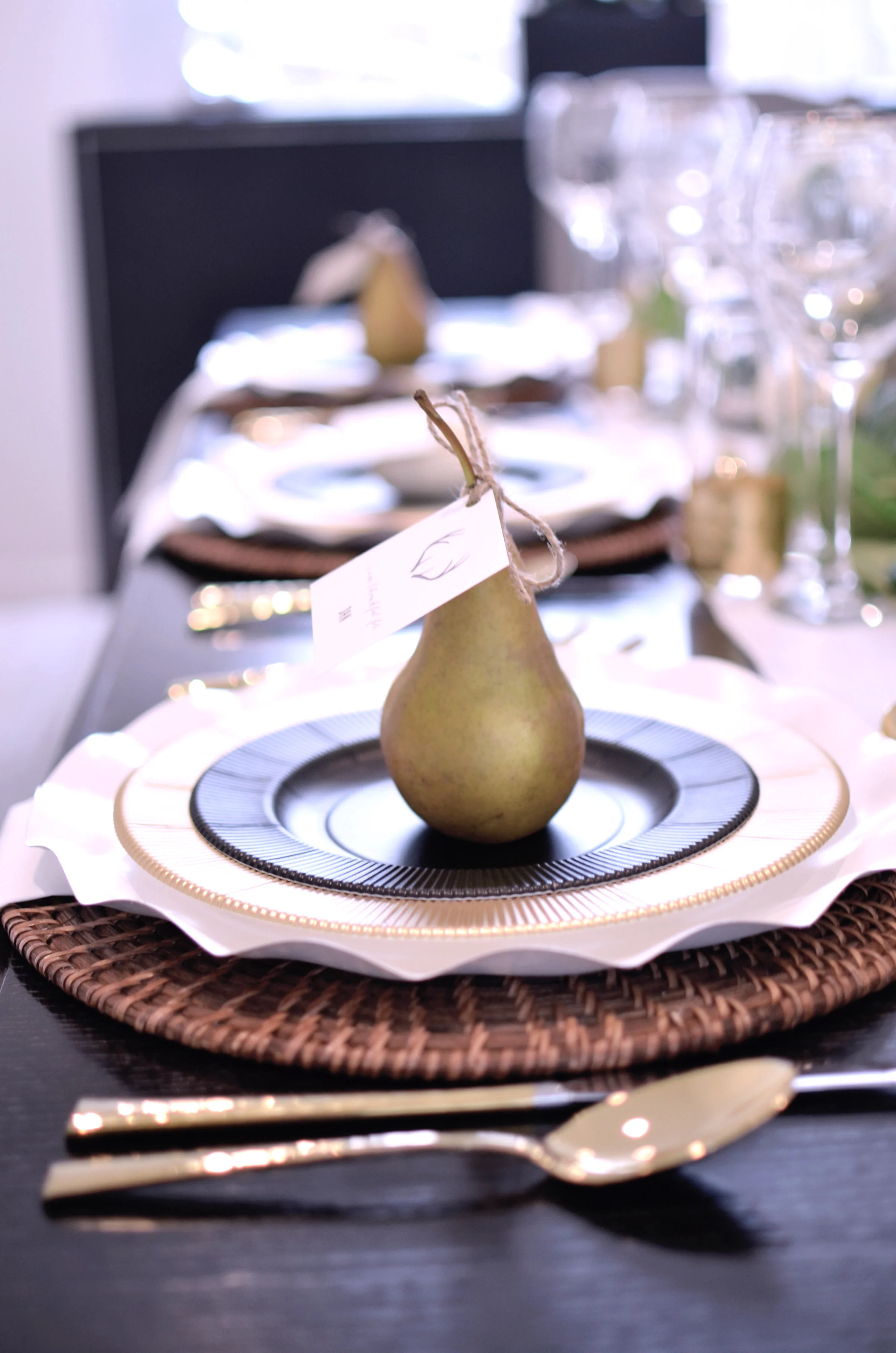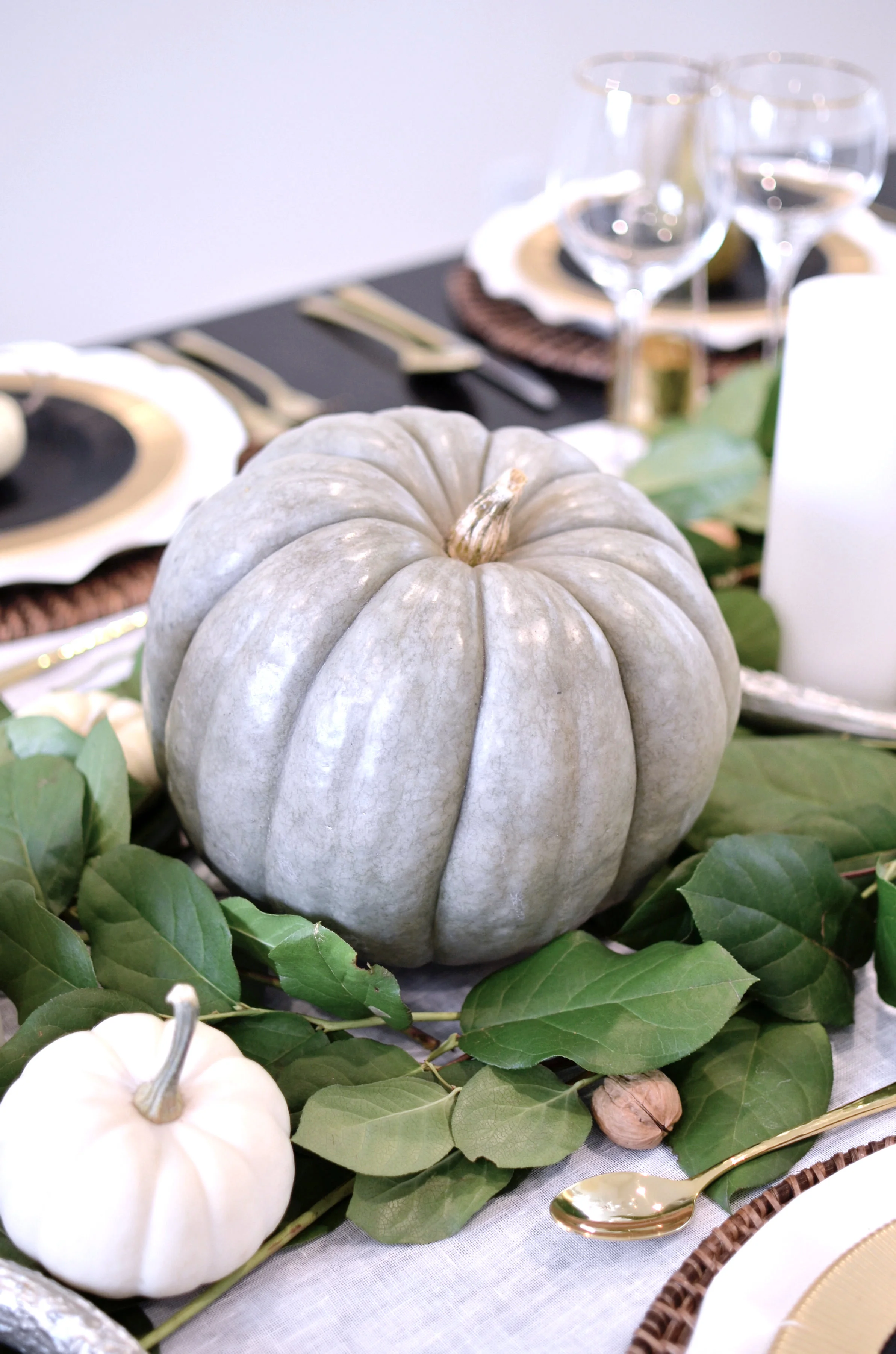 I love the mix of black, white and gold on the table. I think it’s a good balance between sophisticated and casual, so this trio mixed with mini white pumpkins, pears and walnuts will be the theme for this year’s table. The combo just feels so fresh, fall, and festive and says “let’s celebrate” in so many ways.