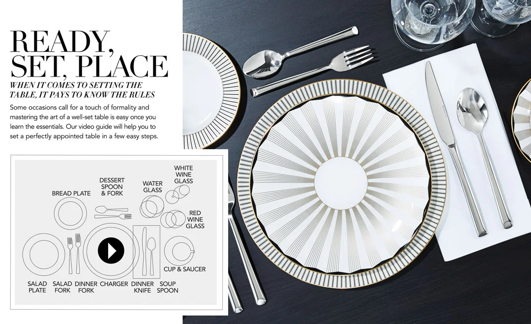 Some occasions call for a touch of formality and mastering the art of a well-set table is easy once you learn the essentials. Our video guide will help you to set a perfectly appointed table in a few easy steps. Featuring our Brian Gluckstein by Lenox dinnerware collections.