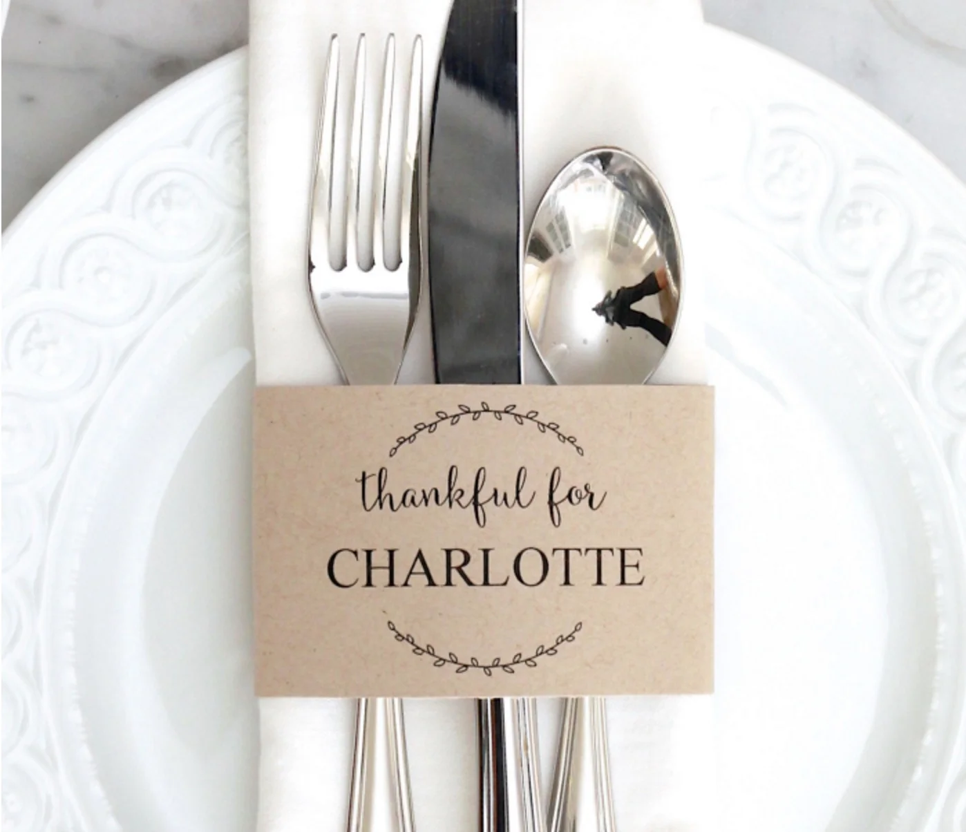 Put the finishing touch on your table with DIY place cards / napkin rings that let your guests know just how thankful you are for them in your life. These printable and editable cards from Bloom Designs Online are easy to make right at home.