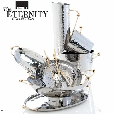 We know that stainless steel barware and table accessories are nothing new, but we think this new take on mixing metals and textures down to the brass knotted handles, is just divine. The hammered finish gives these pieces a classy and timeless appeal and is the perfect combination of cool and warm. It's no wonder they've named this collection Eternity. This look is definitely here to stay.