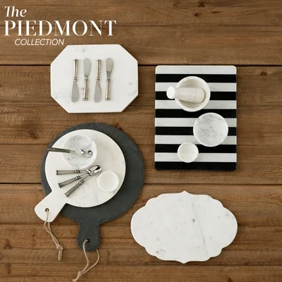 Speaking of appetizers and serving them, who doesn't love the texture and cool touch of Italian marble? The new Piedmont collection is a staple for at home entertaining with pieces to serve appetizers, antipasto platters and kitchen tools to grind up your favorite spices. We'll admit it, we just have a thing for gray marble in any shape or size.