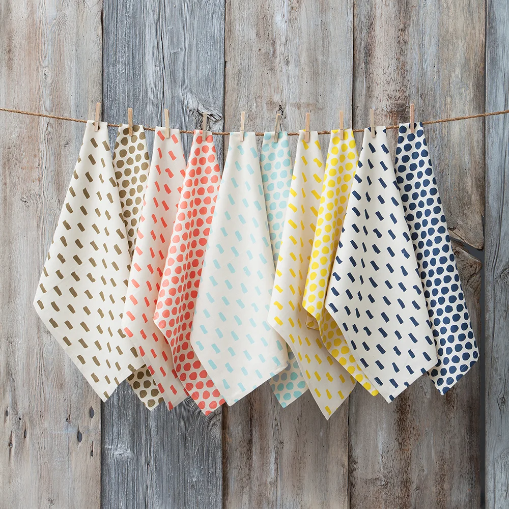 So let's bring some color to the table! Pehr's collection of table linens ranges from classic grey stripes to bold prints in coral, lime, aqua and yellow. And the tea towels! Never thought we'd be so excited about tea towels. But we love the colors to easily transition our kitchen from winter to spring. There's nothing like a good tea towel to take your dish drying game up a notch. We frequently throw them down on a table too, when we're throwing together a quick dinner and don't feel pulling out all the stops. They're the perfect pop of color.