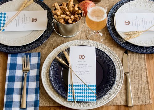 HOW TO THROW AN OKTOBERFEST PARTY: FEATURING CHELSE MUSE DINNERWARE, TUSCANY GLASSWARE, CONTINENTAL FLATWARE, TIN CAN ALLEY SERVEWARE, TUSCANY BEER FLIGHT MODEL + DESIGN
