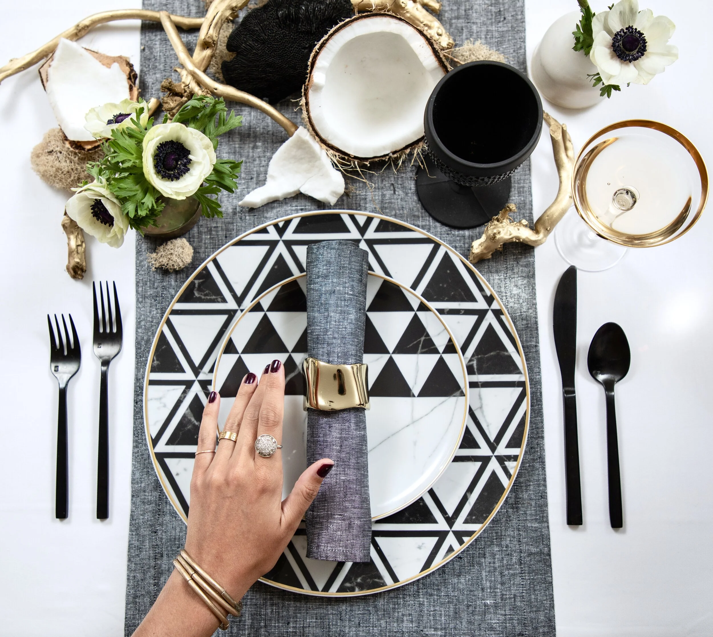 black + white festive table for new year’s eve